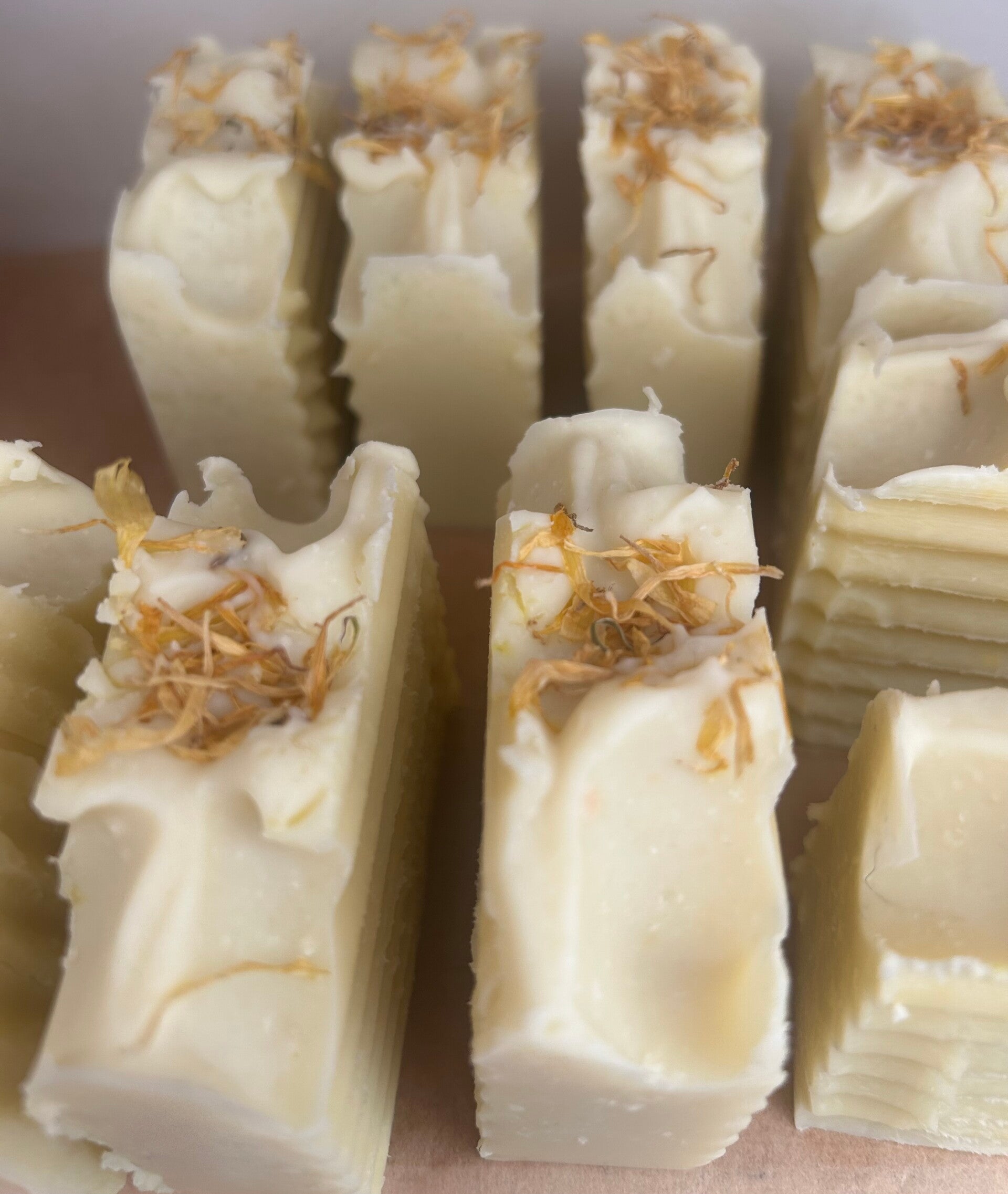 Simply Goats Milk Soap, Hand Made, 100g, free of scent, no colour, Calendula flowers, sensitive skin, Vegan Soap