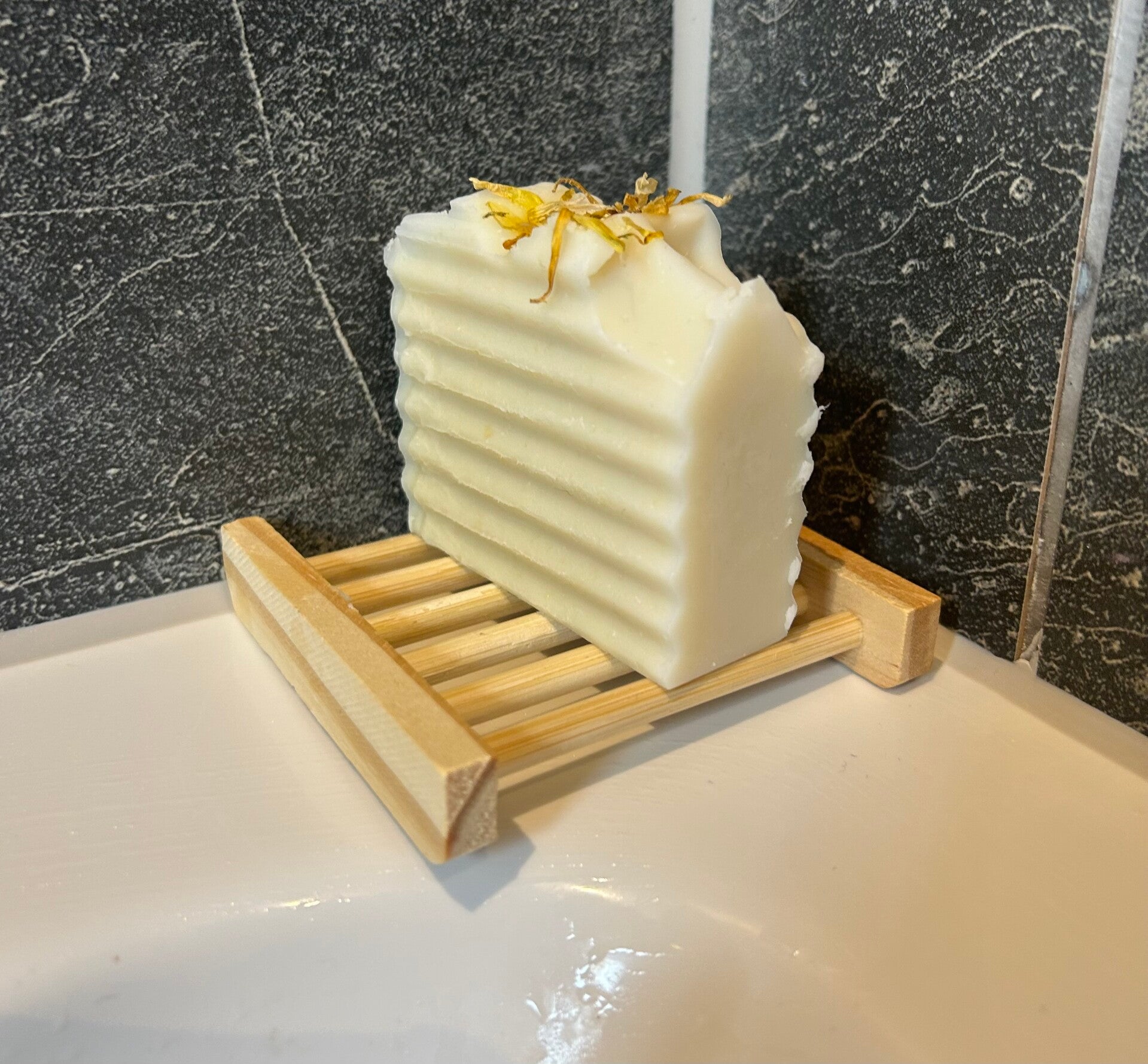 My cold processed Goat’s Milk Soap is made the traditional way — no scent, no colour, just creamy goodness straight from nature.